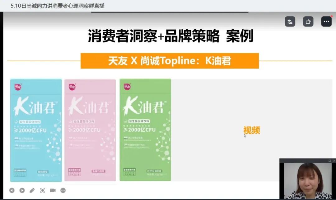 而在“人心市场”上,如何能精准洞察消费者需求、快速抢占“人心”红利、赢得消费者心智,亦成为很多行业和客户品牌传播的关注重点。为了帮助同学们更好的理解消费者洞察,在讲座中,Ruby老师结合Topline全程参与策划及执行的重庆天友乳业新产品“K油君”上市案例,由浅入深,从专业角度阐述了什么是“消费者洞察”,如何一步步通过“消费者洞察”为企业新上市产品进行精准定位、品牌包装,帮助新品与消费者建立信任关系,最后成功推向市场。